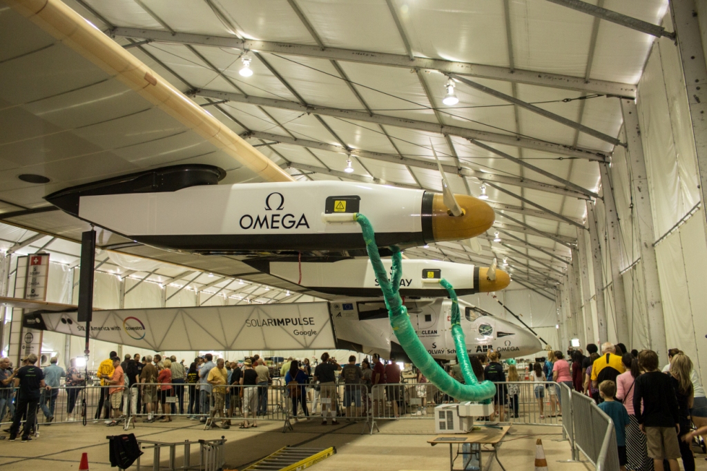 The SI-2, like the name implies is powered solely by sunshine converted to electricity. During the day, some of the electricity provided by sunlight goes to running the four electric motors, the rest goes to power the stun gun in cockpit (to keep the pilot awake) and recharge the batteries.